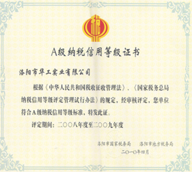 A級(jí)納稅信用等級(jí)證書